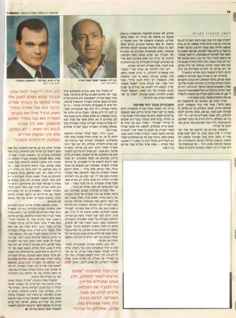 עו"ד רם א. גמליאל בראיון לכתבת השער של שוקי שדה בדה-מרקר.
