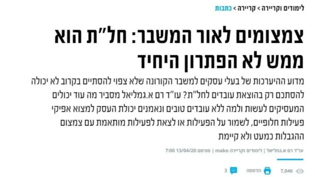משבר הקורונה פגע בעסקים ללא כל הכנה מוקדמת. בין רגע נשלף "פתרון הקסם" – חל"ת. לכאורה פתרון שאמור להיות טוב לכל הצדדים: המעסיק חוסך את עלויות ההעסקה של העובדים בתקופה בה נראה שלא תהיה עבודה, העובד מקבל (חלק) משכרו בדמות דמי אבטלה ולכאורה מקום העבודה של העובד נשמר. אבל, ויש כאן אבל גדול, האם זה בכלל הפתרון הנכון, היחיד או המיטבי? באופן גורף ממש לא.