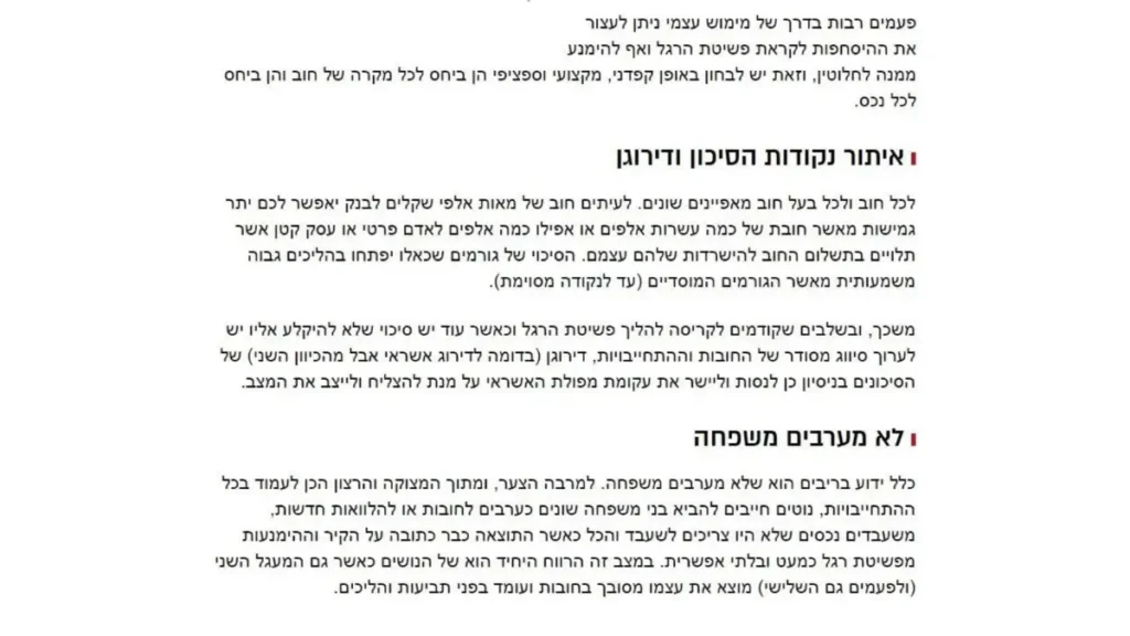 עו"ד רם גמליאל מציג בראיון חמש נקודות להתמודדות עם סכנת פשיטת רגל: הערכה נכונה של החובות, מימוש על ידי הנושים, "לא לערב משפחה", איתור נקודות הסיכון ותום לב.